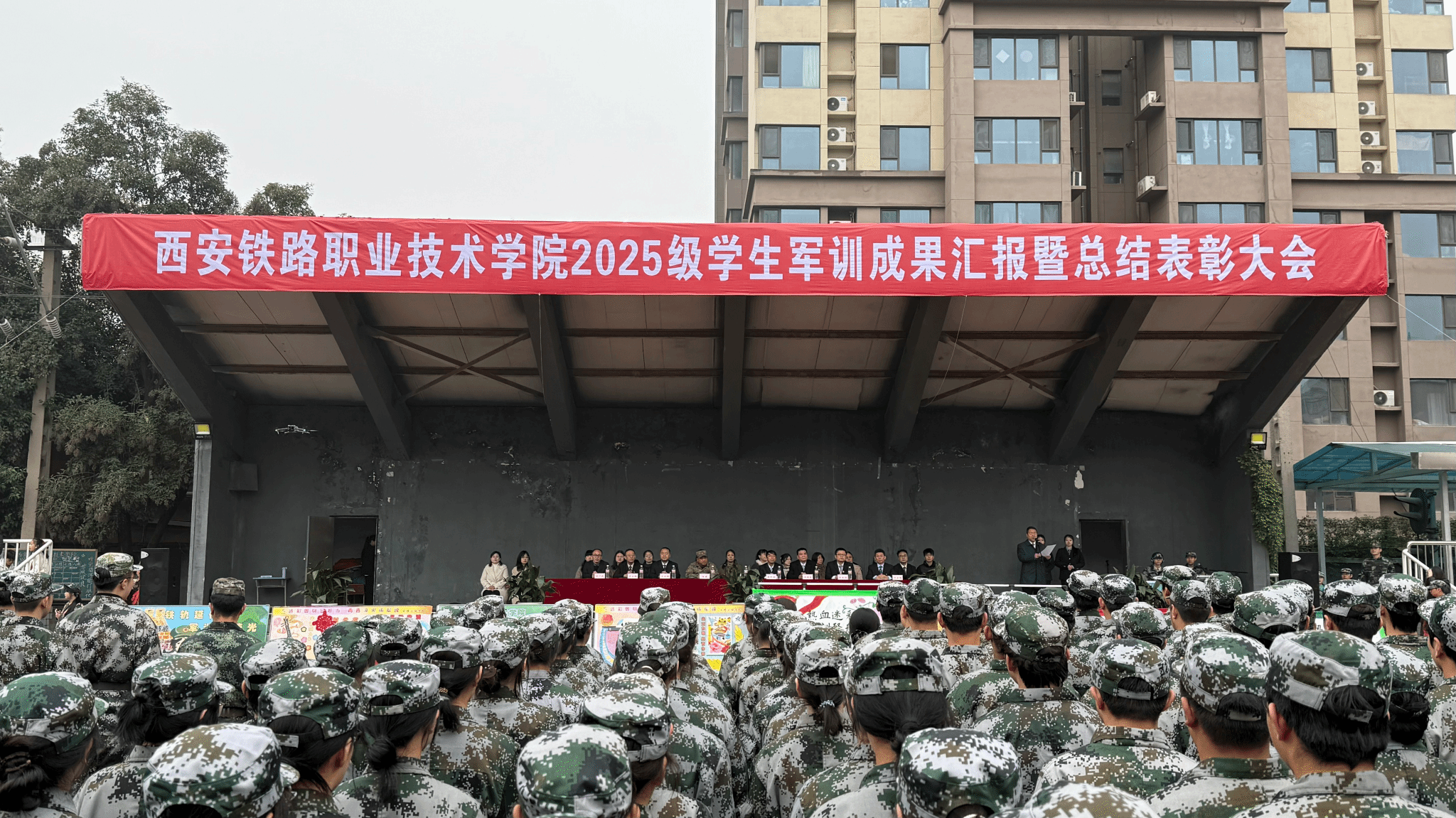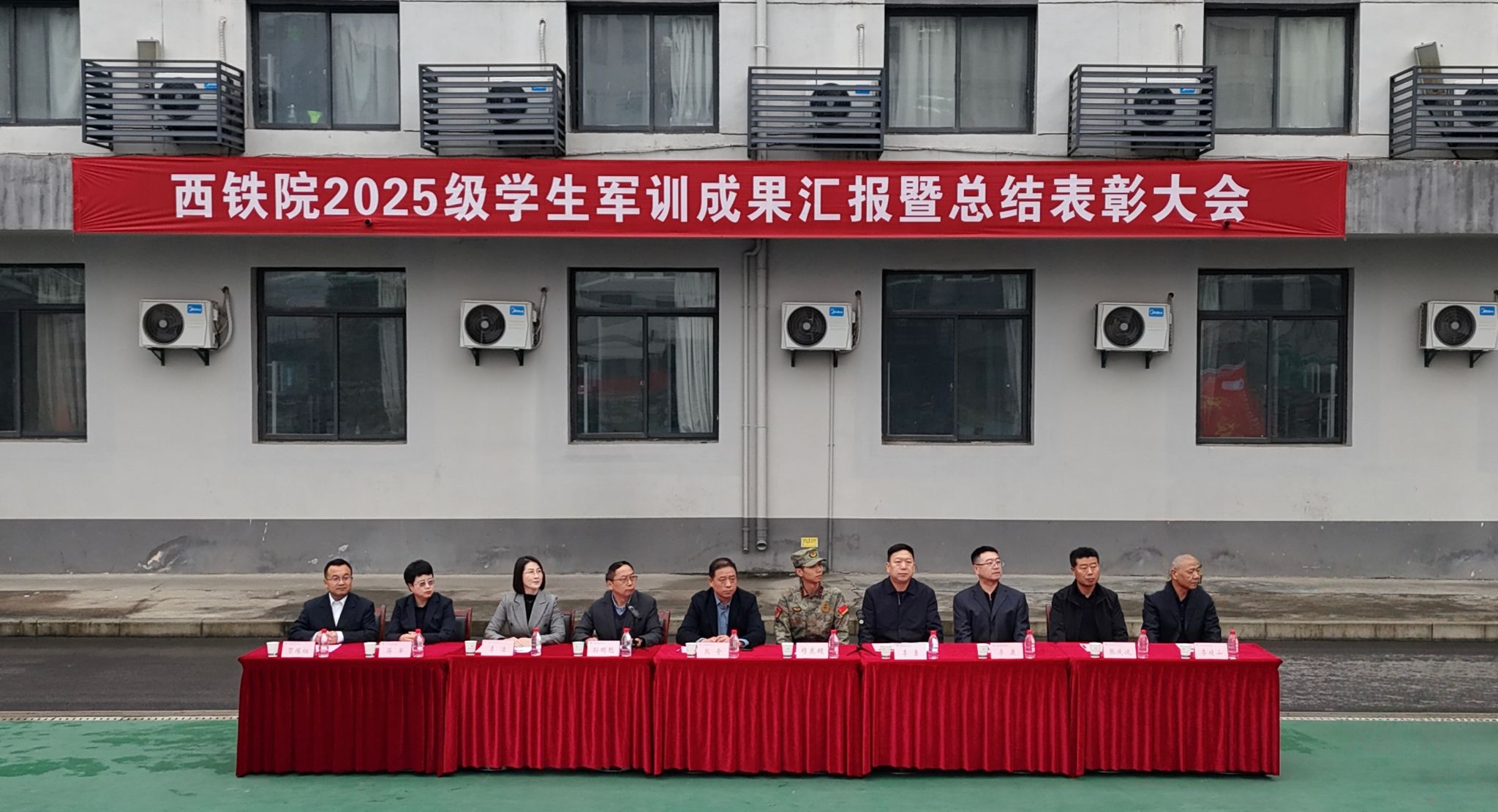 10月25日上午,我院2025级学生军训成果汇报暨总结表彰大会在港务、自强、龙首、临潼四个校区同步举行。学院党委副书记、纪委书记邓轩,党委副书记任治军,副院长安学武,副院长熊奇,副院长滕勇分赴各校区参加了大会。党委宣传部、党委学生工作部、团委等相关职能处室负责人及各二级学院党政负责同志,教师代表、新生辅导员(班主任)、军训教官和2025级全体新生在各自校区参加大会。